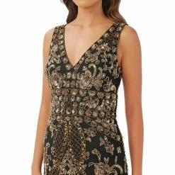 Flash Sale ๐ Adrianna Papell ๐ฉ Women’s Embellished V-Neck Sleeveless Gown Black Gold ๐