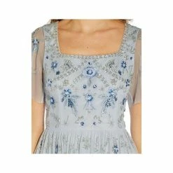 Glam meets boho style in this midi dress from Adrianna Papell that features delicate embroidery and beading along with fun flutter sleeves and a ruffle hem.