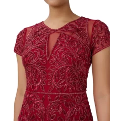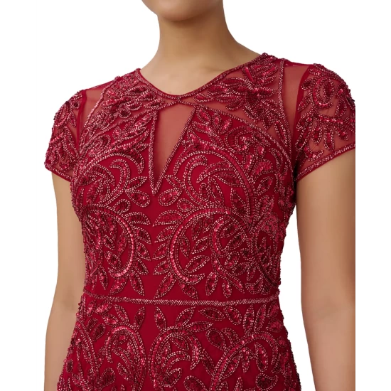 Short and swishy, this totally glam style from Adrianna Papell dazzles allover with hand beading and sequins galore. Now get ready to hit the dance floor.