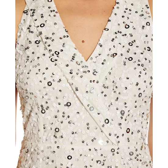 - Allover sequin floral print embellishment