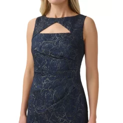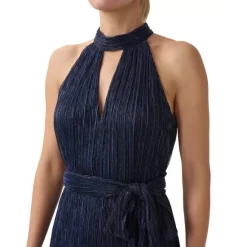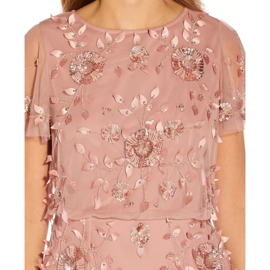 A romantic mix of beads and sequins sparkle throughout the sleeveless silhouette of this Adrianna Papell gown, designed with a blouson bodice and beautifully draped back.