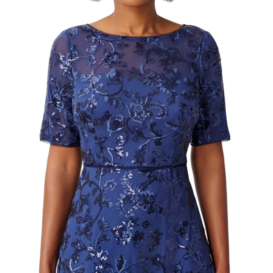 Mesh insets sweep and sway with every step in this compliment-worthy gown from Adrianna Papell, fashioned with shimmery beads and sequins throughout.