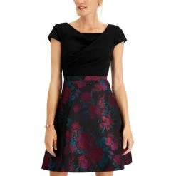 Adrianna Papell’s fit & flare dress is the life of the party with a jacquard-pattern skirt to contrast a solid bodice.