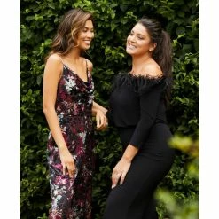 Luxe up your look with this feather-trim jumpsuit from Adrianna Papell.