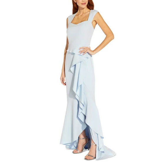 Supremely stylish, from flowy ruffled front to sleek cutout back, this Adrianna Papell gown makes an elegant entrance at any venue.