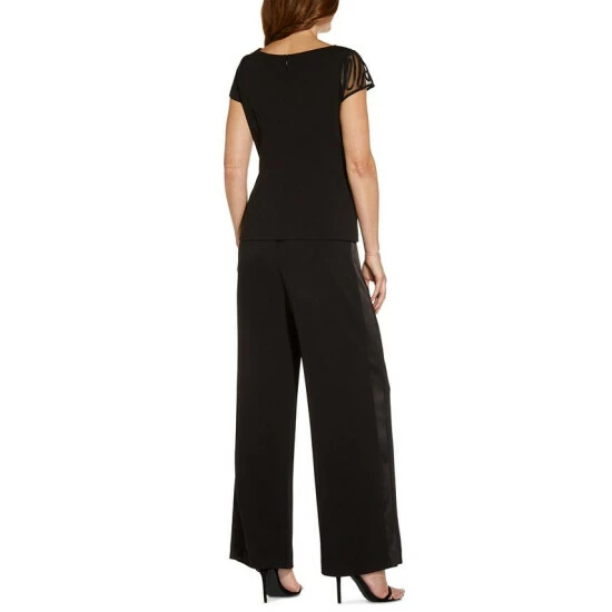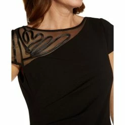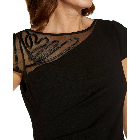 Soutache trim swirls across the sheer asymmetrical insert of this Adrianna Papell top to deliver a fresh slant on elegant style.
