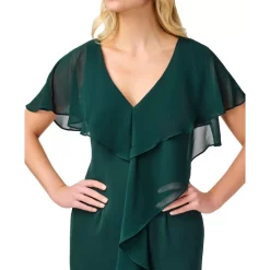 Styled from a liquid metallic fabric, this goddess-like gown from Adrianna Papell stuns with its graceful neckline and draped details.