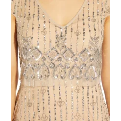 Be the image of glamour in Adrianna Papell’s popover gown, showcasing a beaded finish.