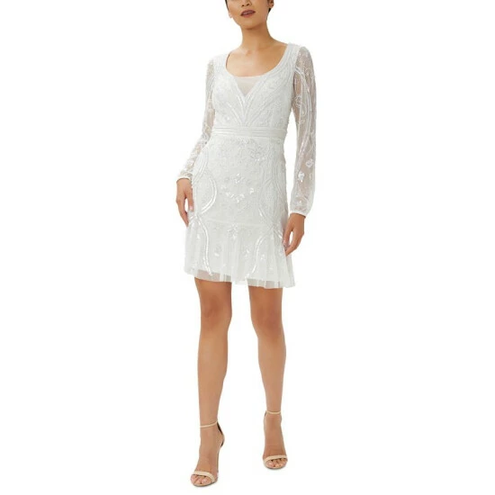 Beads and sequins lend subtle shine and texture to this floaty mesh dress from Adrianna Papell. It’s above-the-knee silhouette is perfect with sky-high heels.