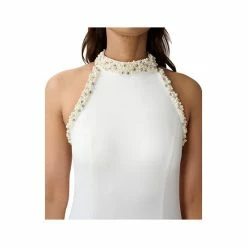 - Embellished mock neck; Fit & Flare silhouette