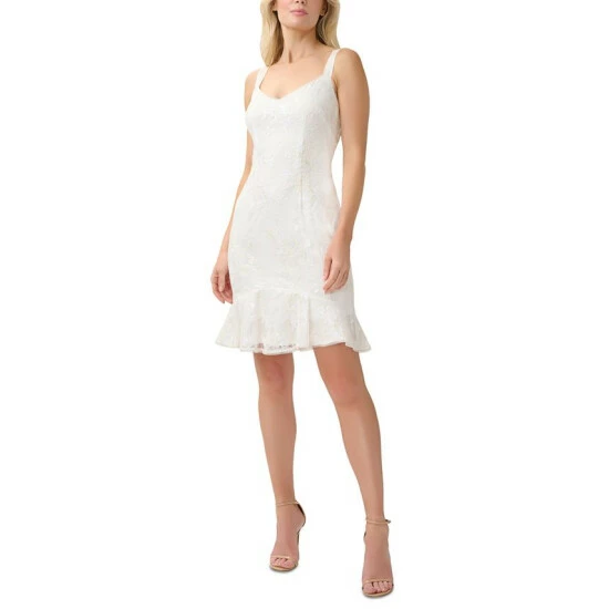 Elegant embroidery lends a chic finish to this ruffled-trim dress from Adrianna Papell.