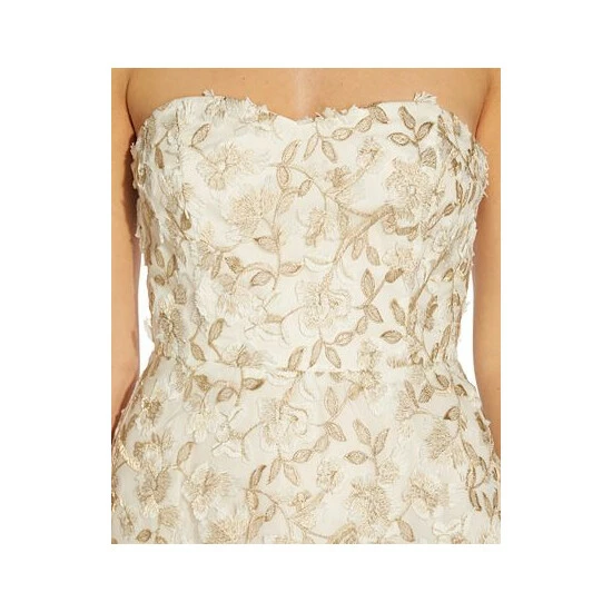 Elegant floral embroidery blooms across Adrianna Papell’s strapless dress, a flattering fit and flare silhouette finished with a romantic sweetheart neckline.