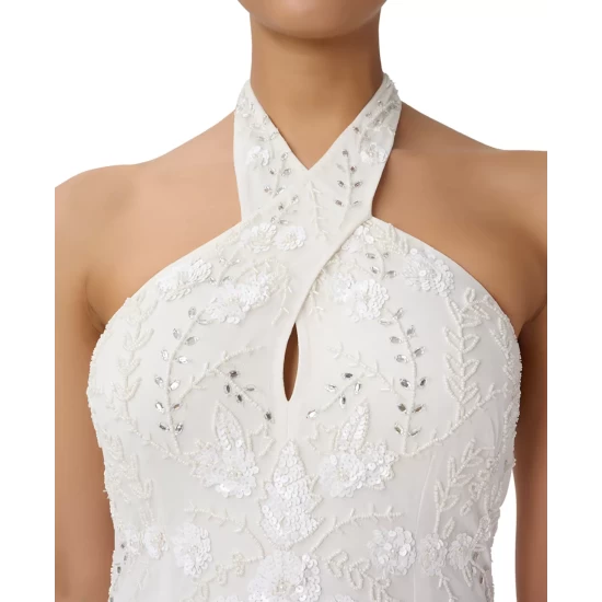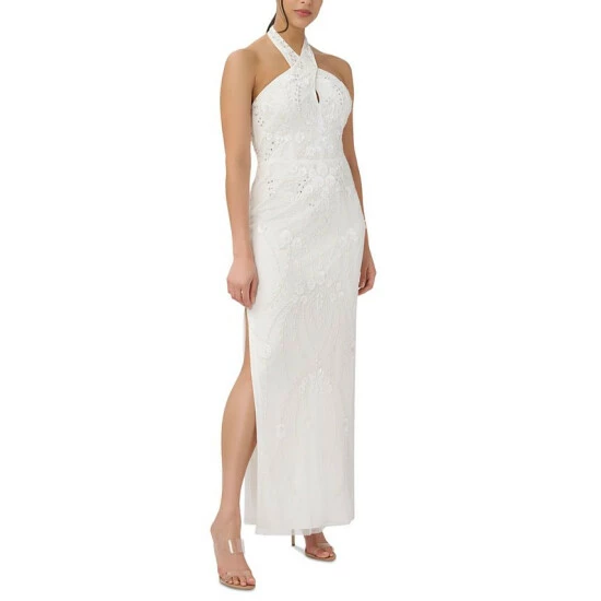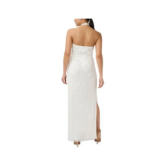 If you’re looking for a standout look, you’ve come to the right place. This Adrianna Papell gown is absolutely stunning with its embellished design and elegant halter neckline.