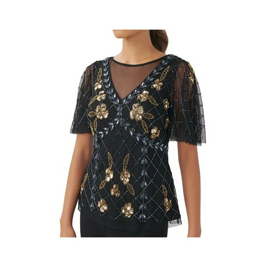Sheer fabric and sparkling embellishments add party-perfect detail to this Adrianna Papell top.