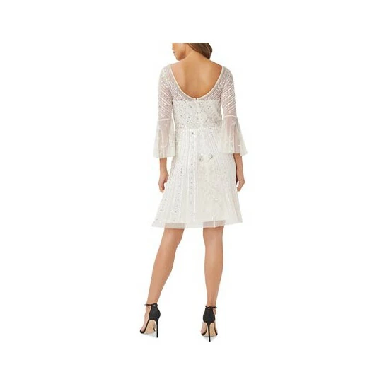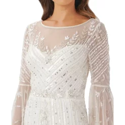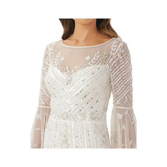 Ethereal and dreamy, this Adrianna Papell dress is a whole vibe with its sheer sleeves, embellished details and floaty silhouette.