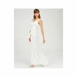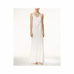 - Allover lace; V-back; removable ribbon sash