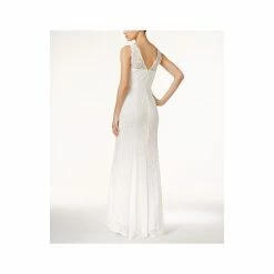 - Illusion V-neckline with eyelash lace detail, straight at bust; A-line silhouette