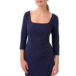 Lustrous tux-inspired styling glows with understated glam in Adrianna Papell’s belted A-line dress with a surplice shawl collar.