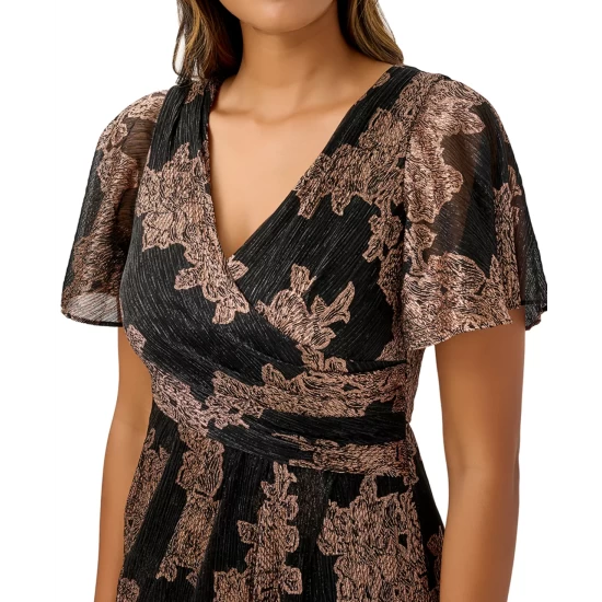 Meet your plus-one for your next cocktail party: Adrianna Papell’s metallic wrap dress.