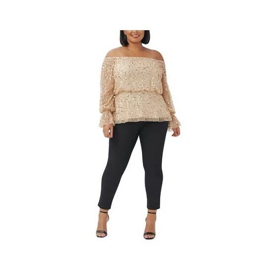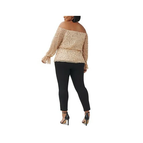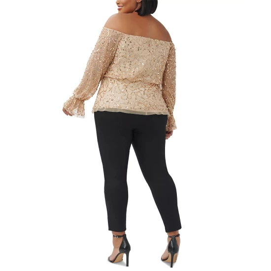 An evening of glamour is all yours the minute you slip on this gorgeous Adrianna Papell top. Completely decorated with glittery beads, this off-the-shoulder style is both elegant and attention-getting.