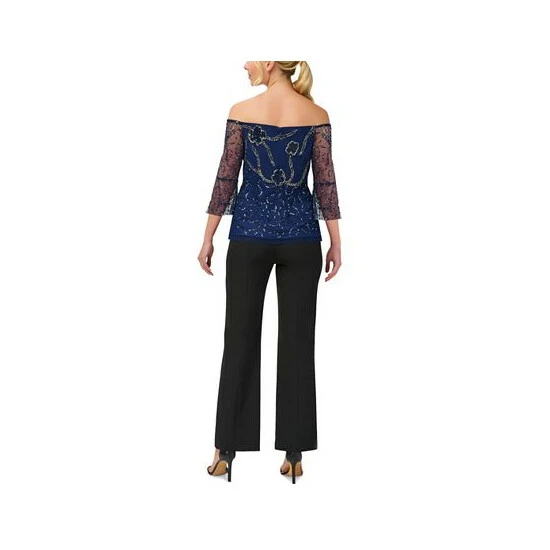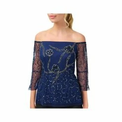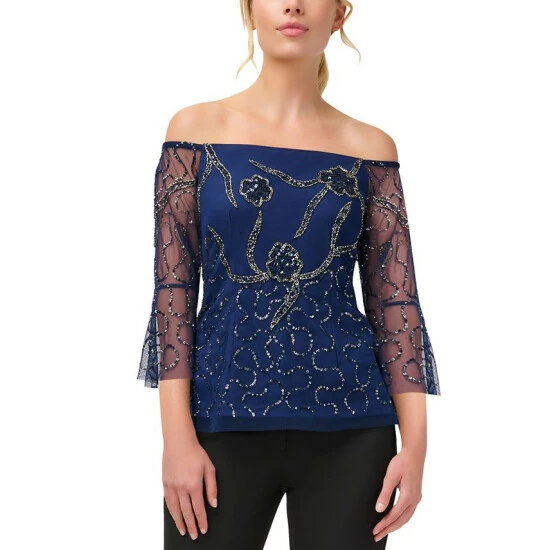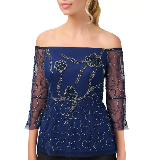 Show off your shoulders with this striking blouse by Adrianna Papell. Covered in glittery embellishments, its sheer sleeves finish off the party-ready look.
