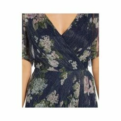 Moody blooms debut on this beautiful gown by Adrianna Papell, a floor-sweeping look with a dramatic leg slit and flutter sleeves.