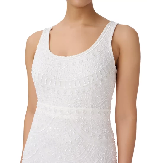 Presenting your cocktail party plus-one: Adrianna Papell’s fringe-trim sheath dress.